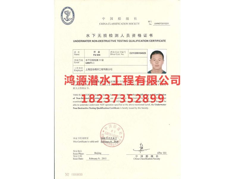 水下無損檢測人員資格證書